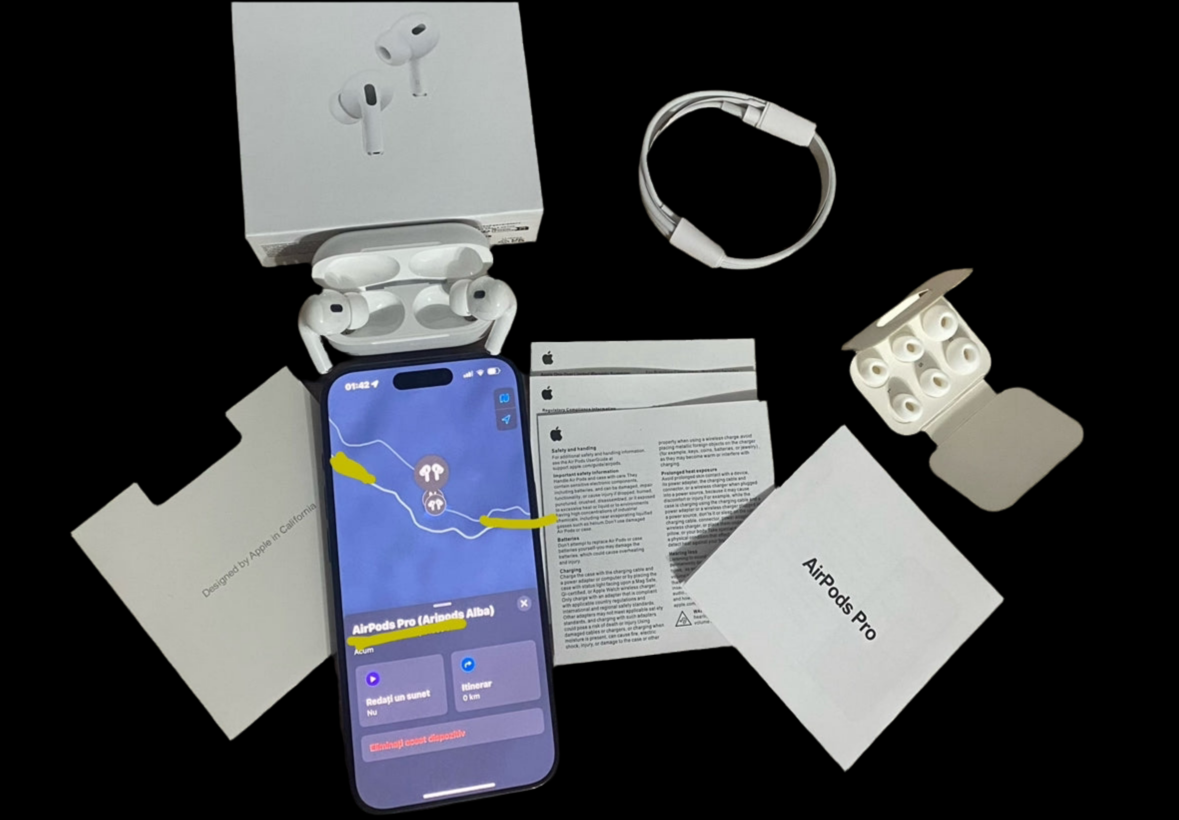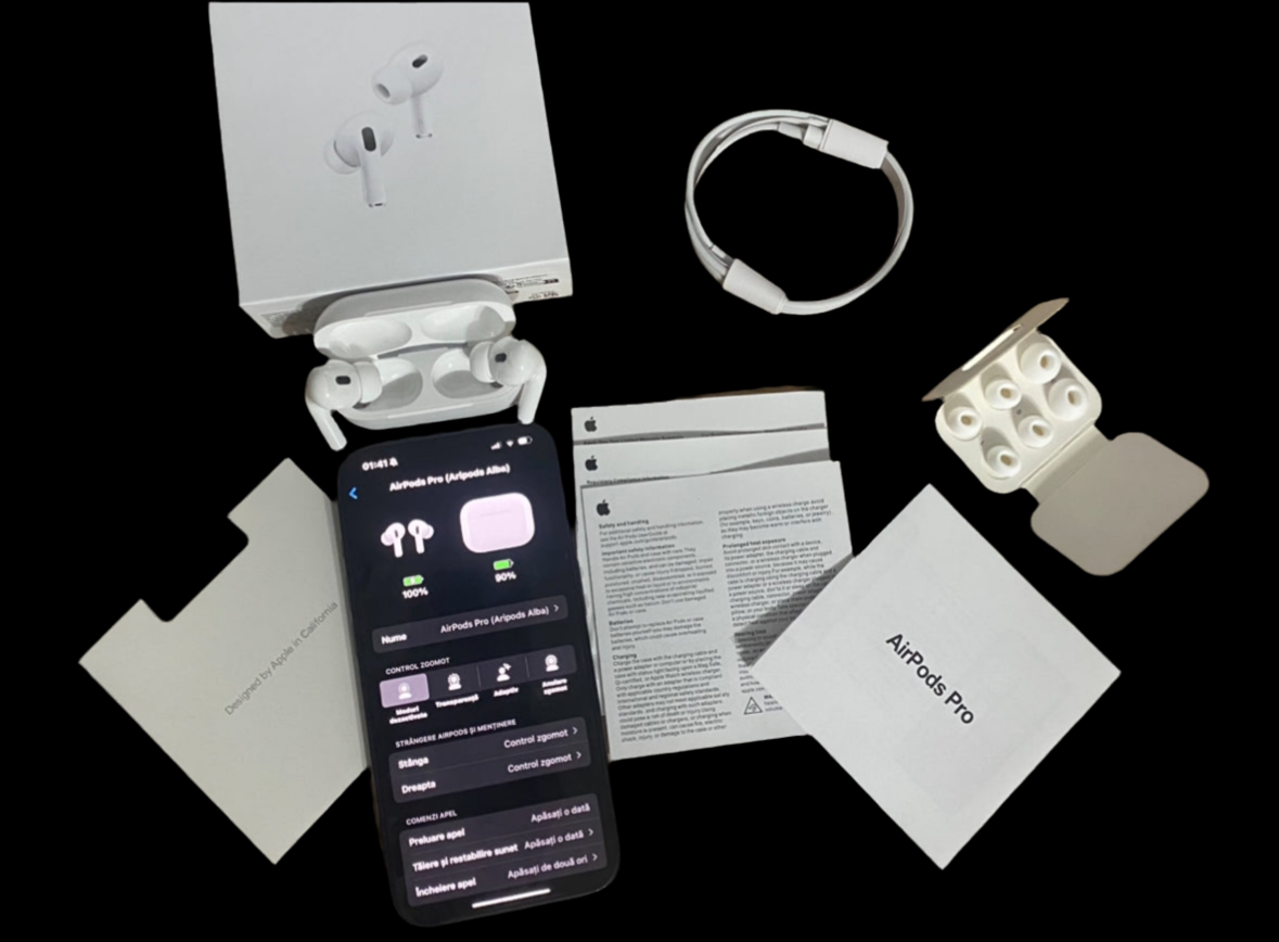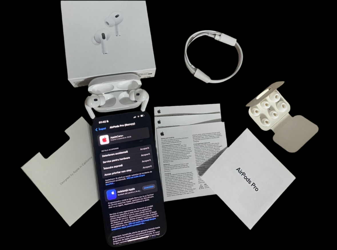 •AirPods Pro 2 – Sunet premium, funcții avansate, control absolut Cu AirPods Pro 2, fiecare sunet este mai clar, mai profund și mai captivant. Căști true wireless cu design rafinat, anulare avansată a zgomotului și funcții inteligente – ideale pentru orice dispozitiv, fie iOS sau Android.